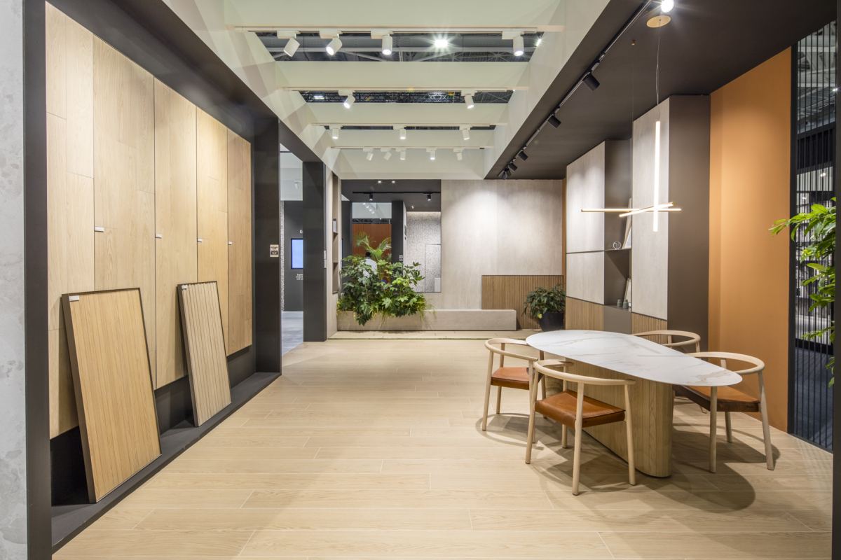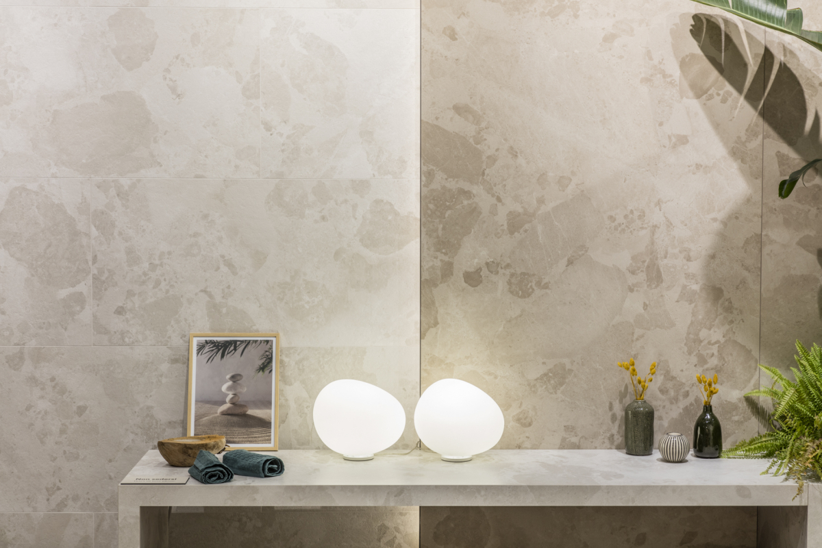 A queste si affiancano soluzioni dal forte impatto estetico: la linea Project Evolution, che amplia le possibilità espressive del gres in grande formato; Marble Inspiration, che rilegge la classicità del marmo con eleganza contemporanea; e Haven, della linea Contract Solutions, che esprime con rigore e sensibilità l’essenza della pietra naturale.
