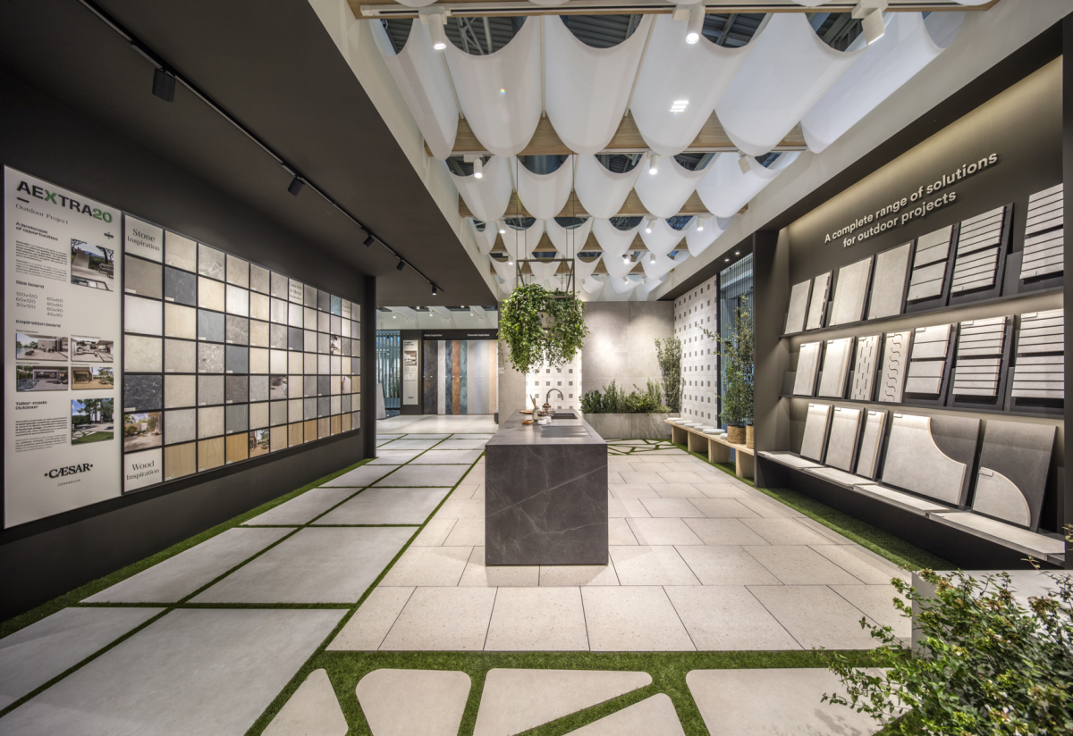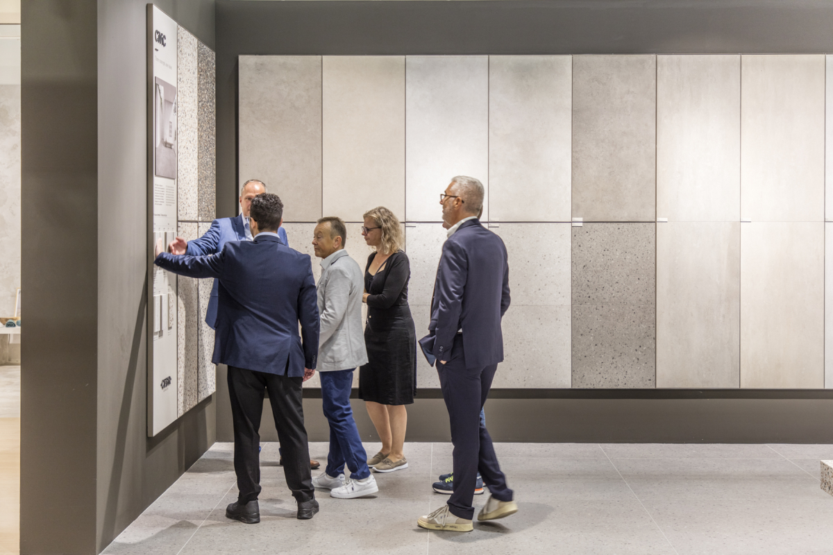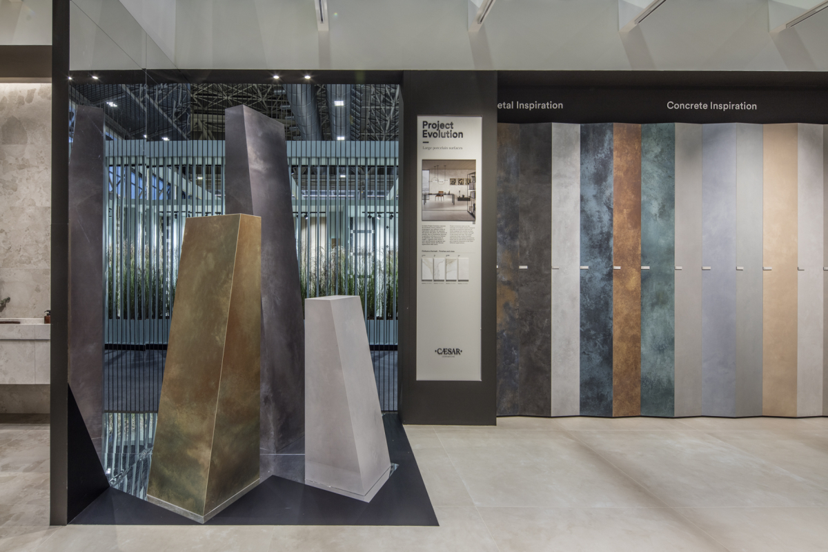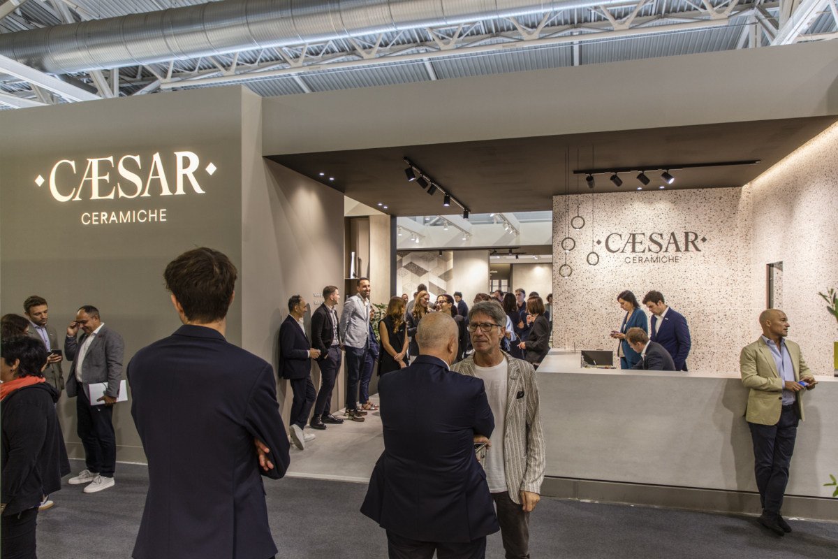 Lo stand espositivo, concepito come spazio immersivo e interattivo, ha permesso ai visitatori di entrare in contatto diretto con le superfici, esplorandone texture, dettagli e potenzialità applicative. Il dialogo con il team Caesar ha arricchito l’esperienza, trasformando la visita in un momento di confronto e condivisione professionale.