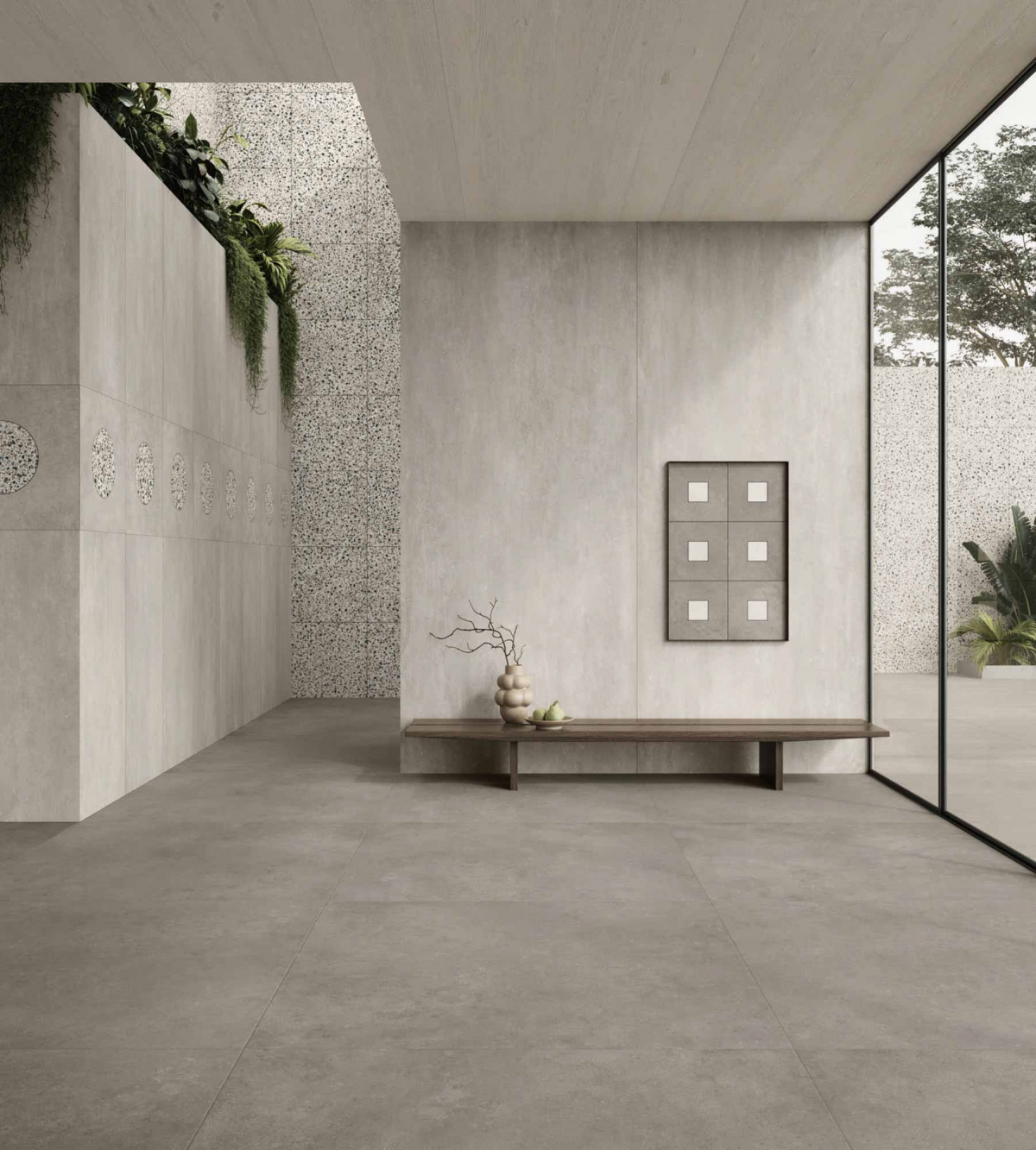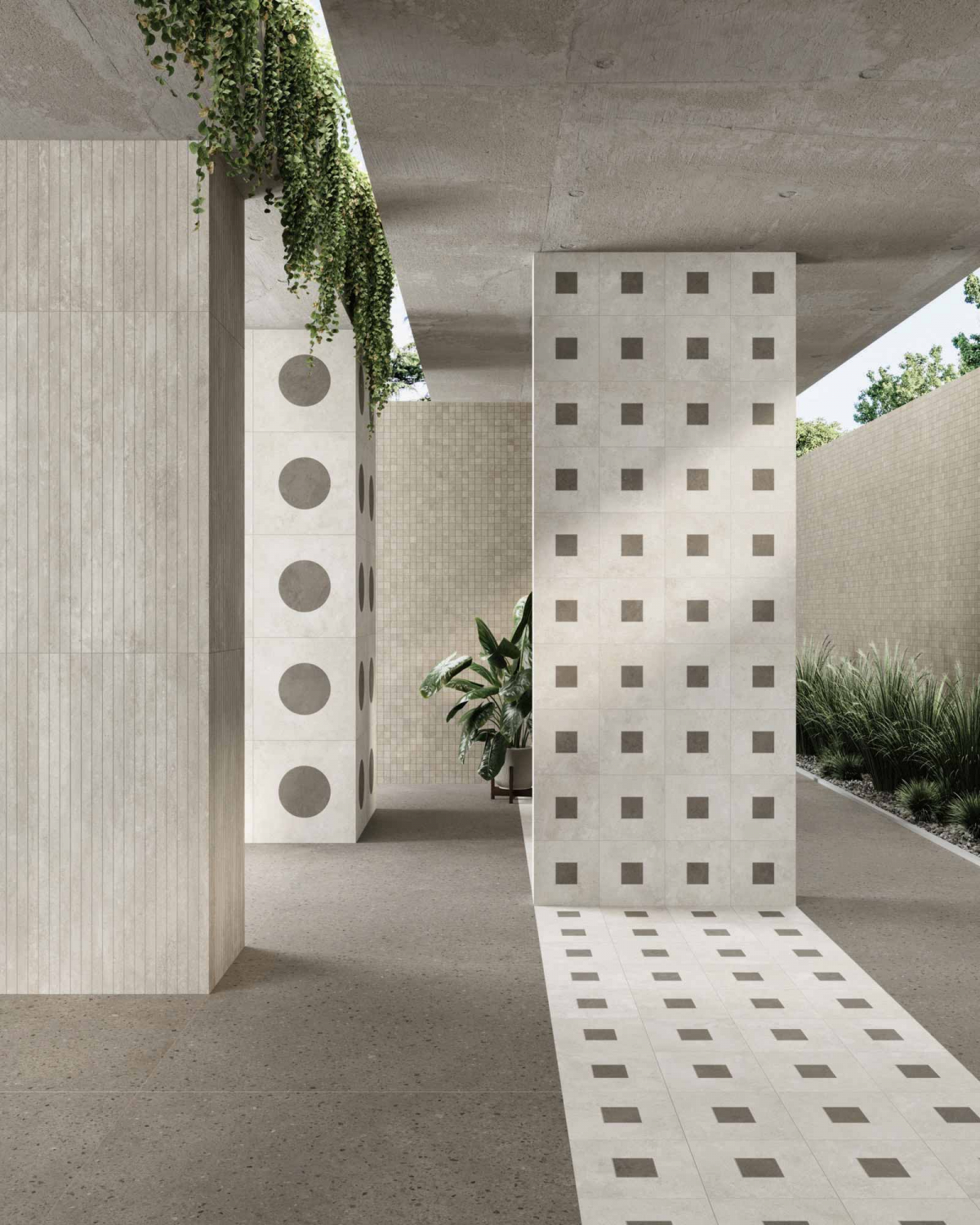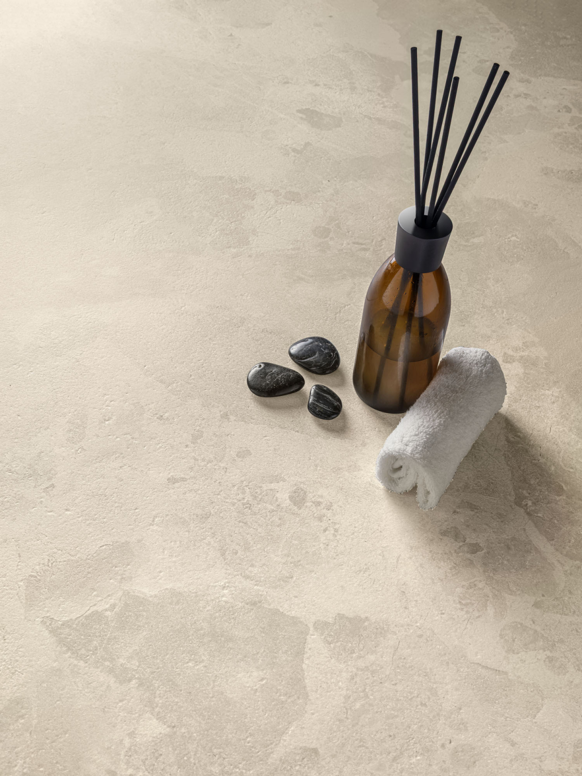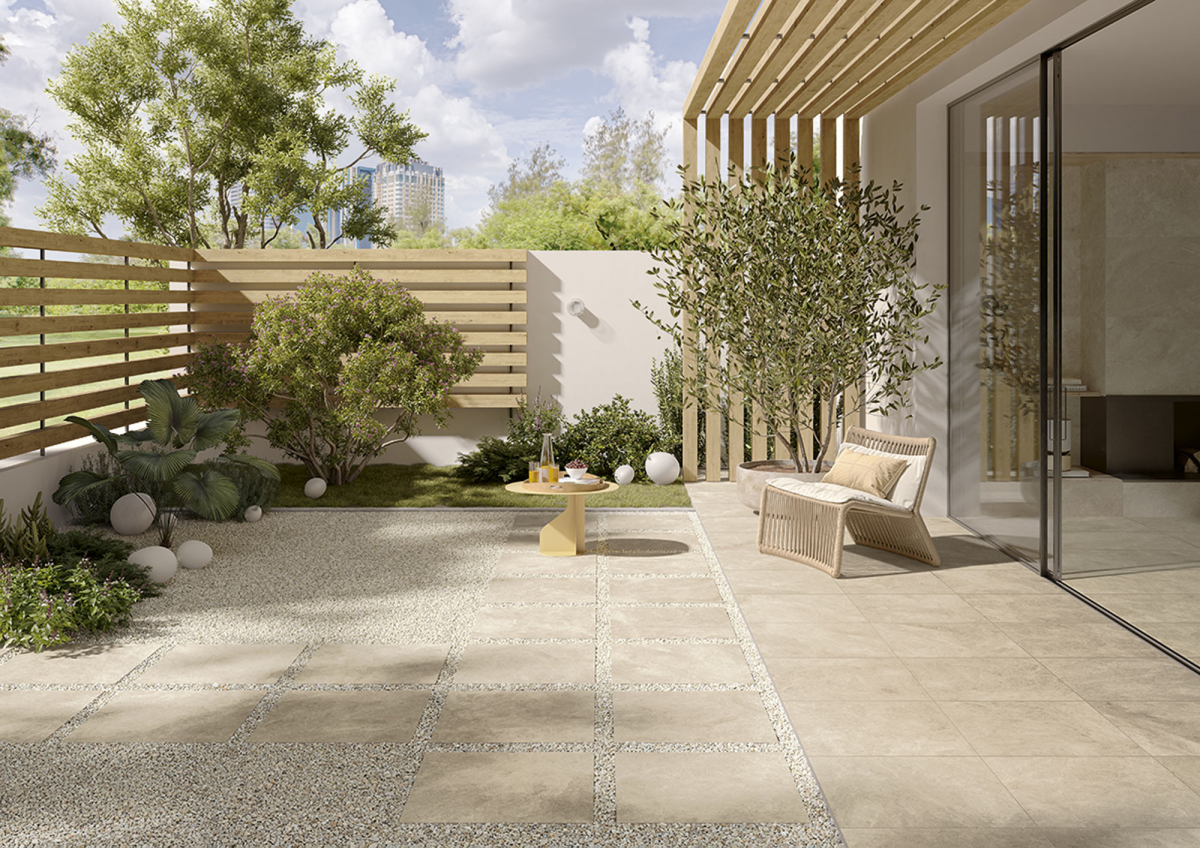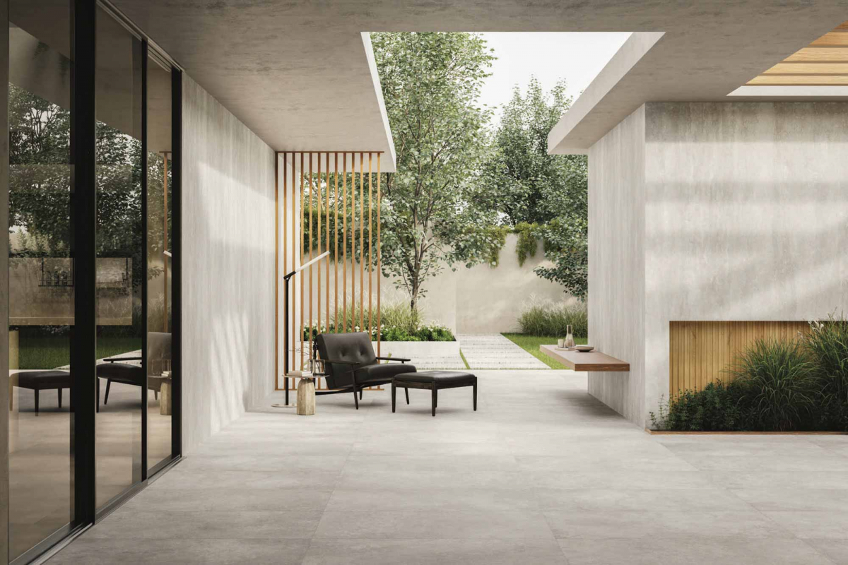 Architettura e materia dialogano in chiave essenziale e armonica, con un linguaggio visivo misurato. I colori naturali, le texture sobrie e la forza discreta del gres porcellanato danno vita a un paesaggio interiore fatto di equilibrio, continuità e tracce leggere.