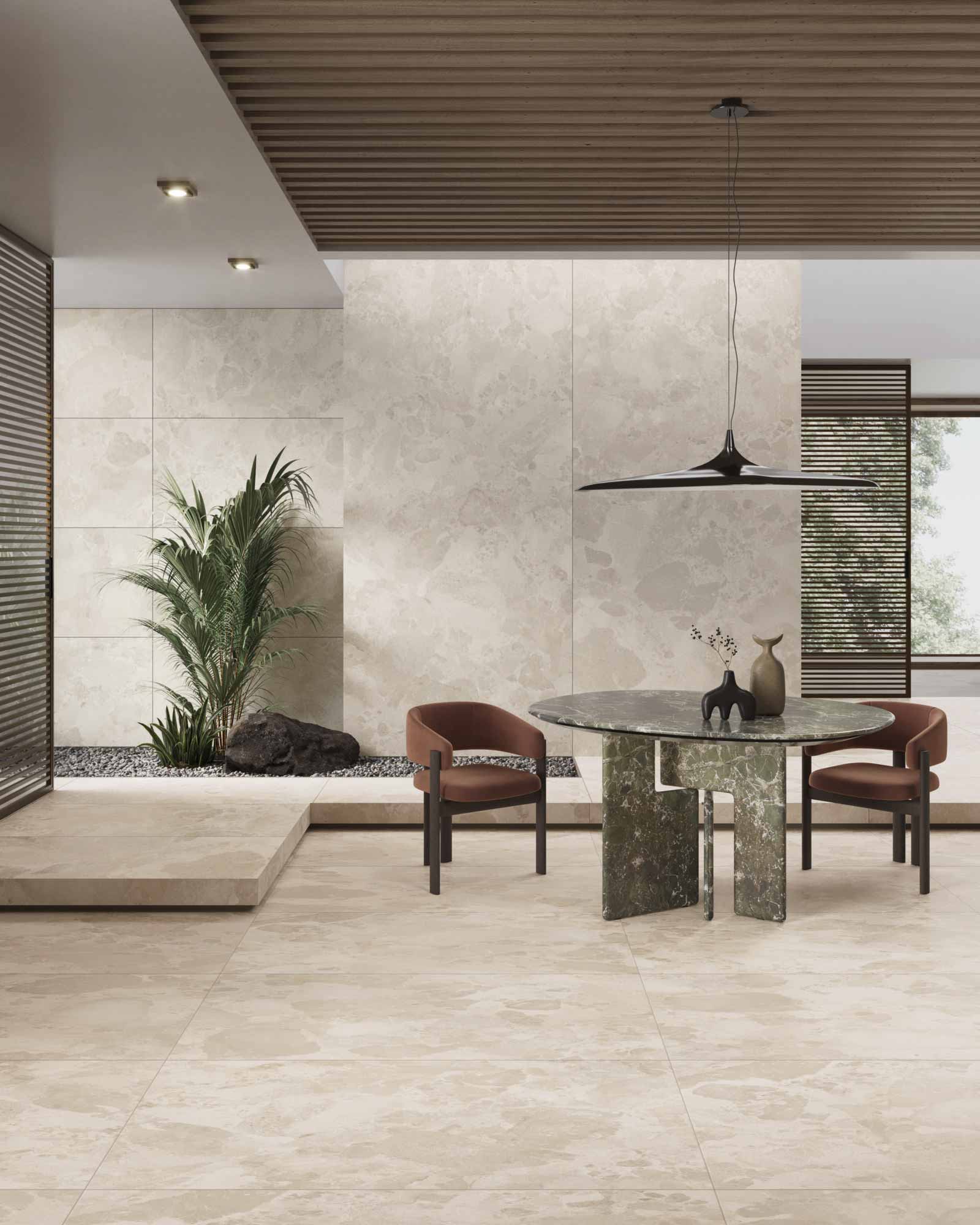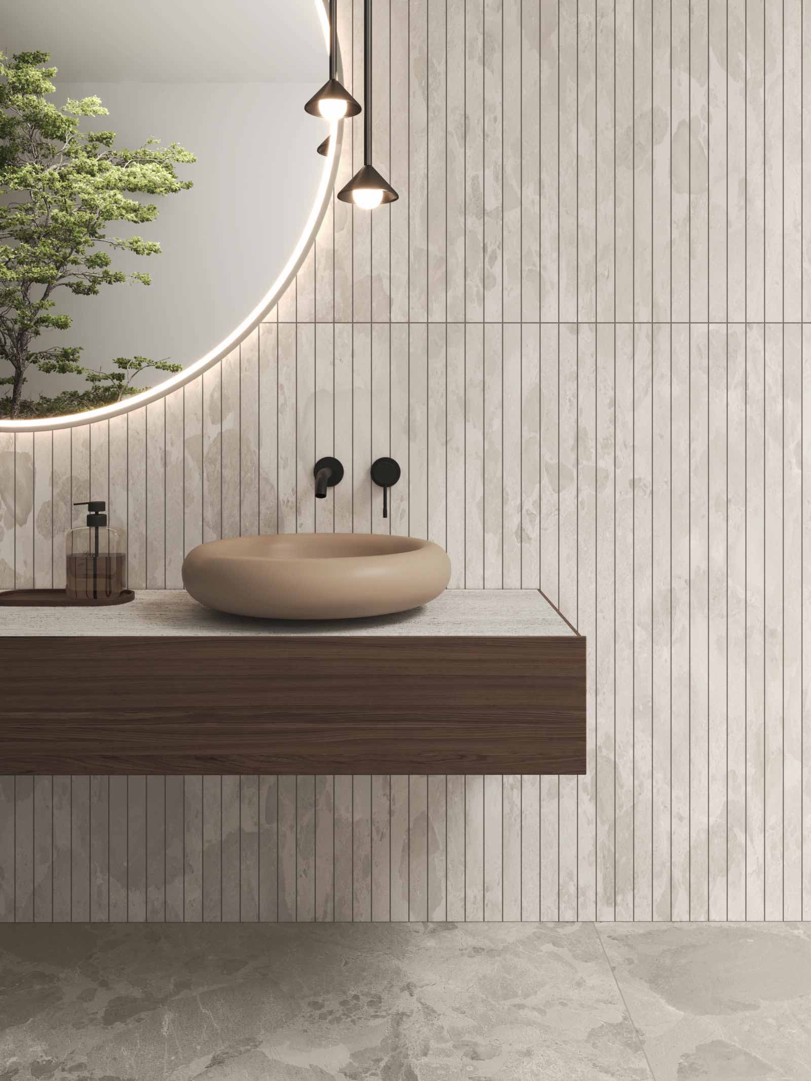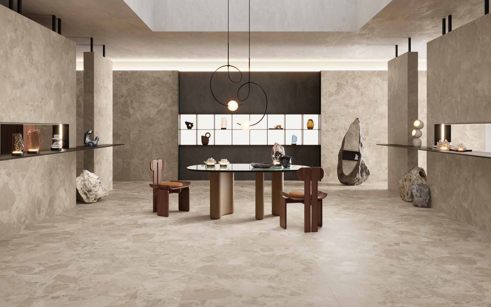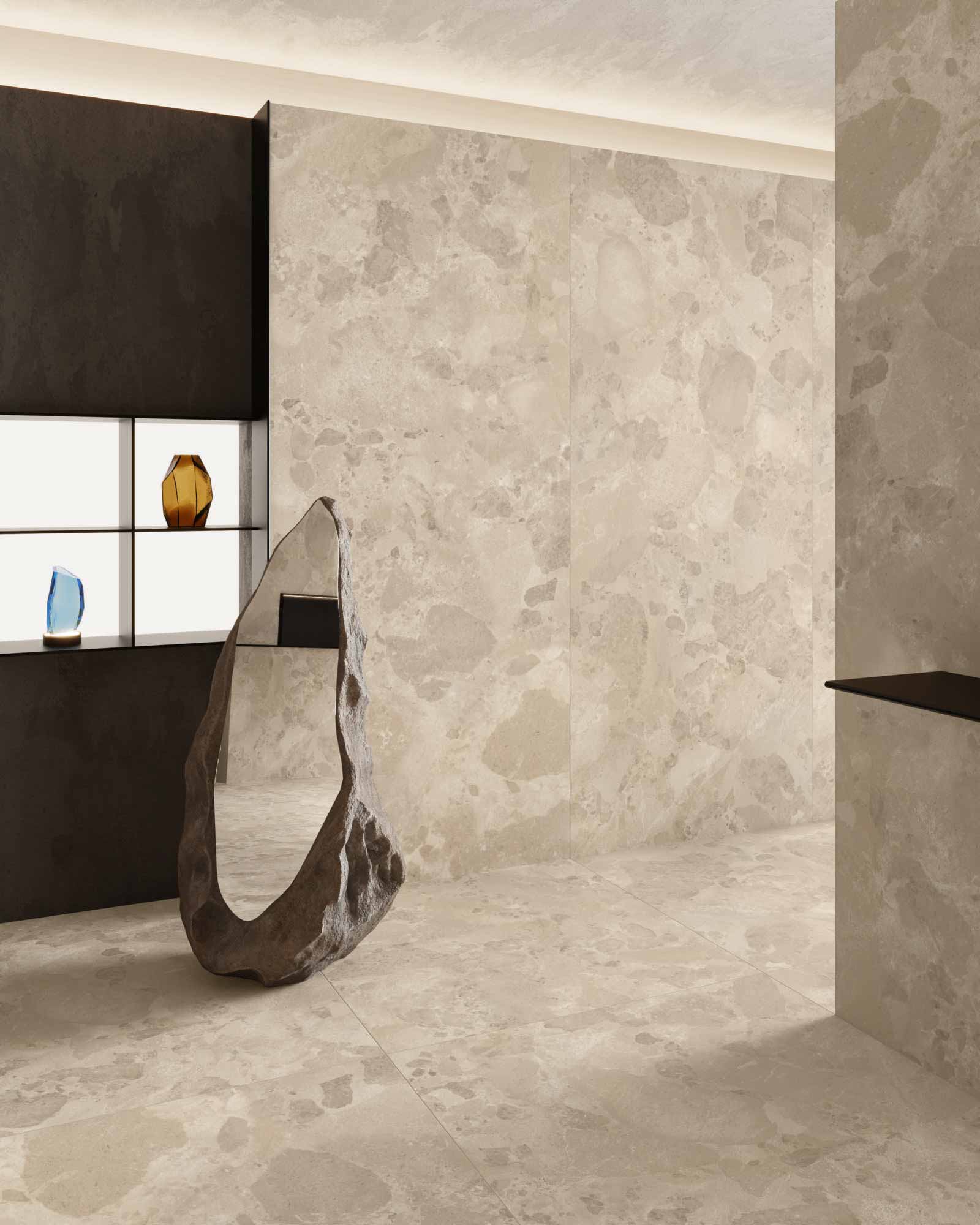 Bloomstone reinterpreta l’essenza della natura come espressione di equilibrio tra forza e delicatezza. Le tonalità si intrecciano in un dialogo cromatico sottile e danno vita a un tessuto materico elegante e raffinato, rivelando profondità e sfumature, come tracce modellate dal tempo.