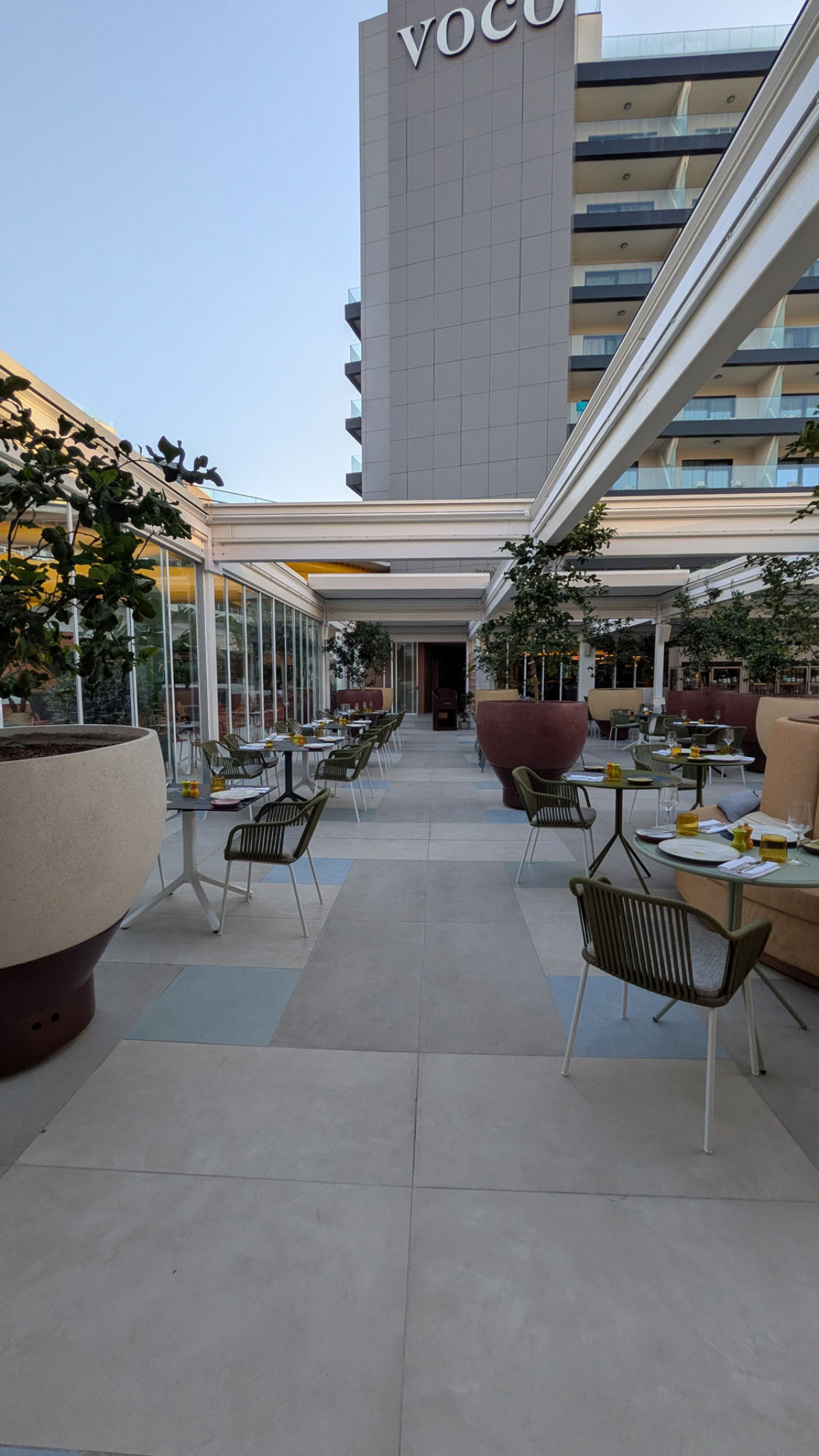 St. Julian's concentra lungo la costa maltese una delle densità ricettive più alte del Mediterraneo. L’hotel Voco Malta si inserisce in questo tessuto attraverso una strategia di elevazione: l'ingresso si colloca al quarto piano, dove una terrazza di 1.300 metri quadrati stabilisce il piano di accoglienza separandosi dal livello della strada. Il ponte collega l'hotel VOCO e LUMI all'hotel InterContinental Malta. Questa organizzazione ha posto come esigenza centrale la continuità materica e Caesar ha fornito la risposta attraverso un sistema di superfici in gres porcellanato calibrato sui requisiti tecnici ed estetici di ciascuna area, mantenendo la coerenza complessiva attraverso formati e palette coordinate.