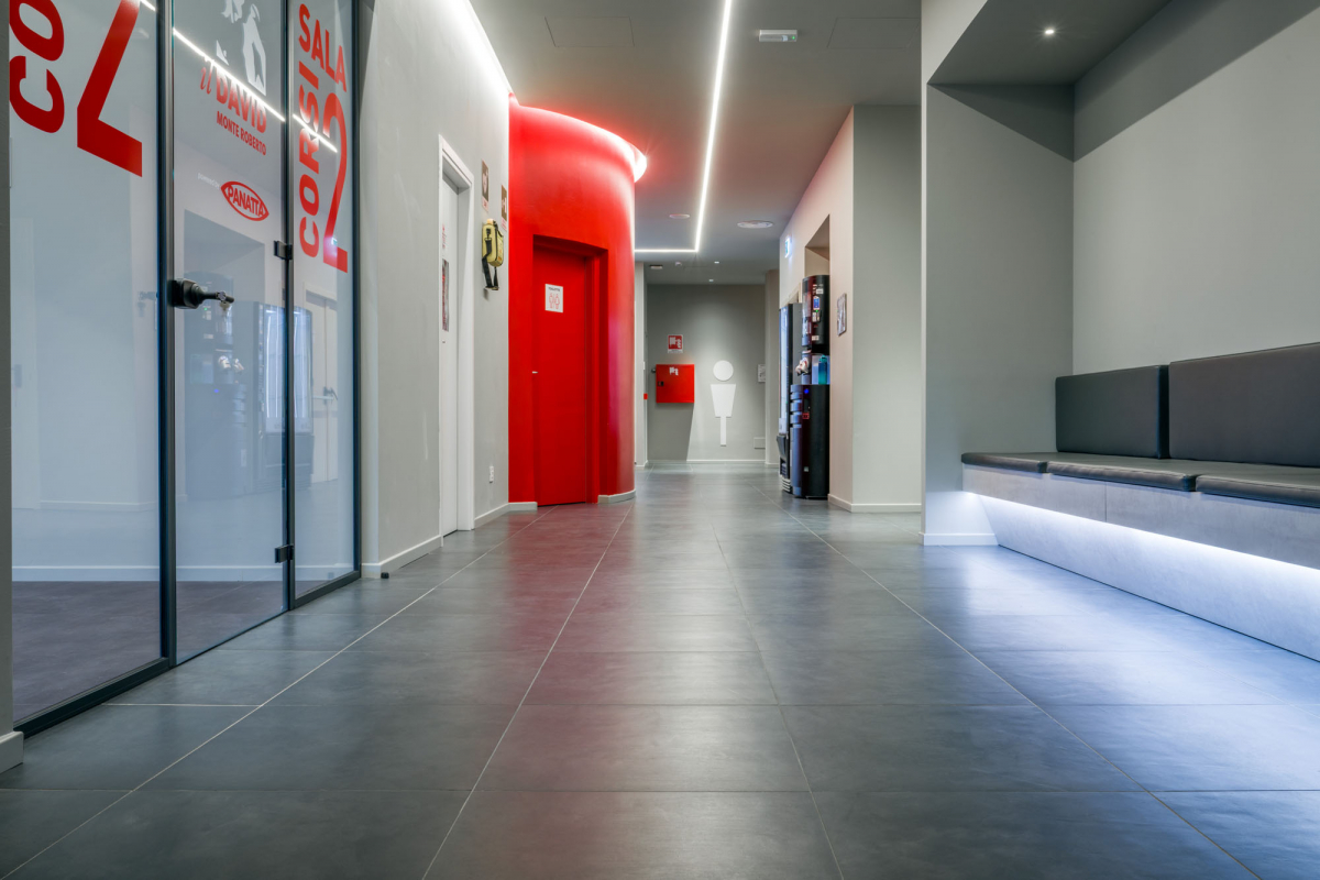 Il David di Monte Roberto si colloca all’interno di un edificio commerciale sviluppato per fasi nel comune di Monte Roberto, nelle Marche, e ne rappresenta il completamento funzionale. Il percorso di sviluppo si è concluso nel 2025 con l’apertura di una nuova struttura fitness realizzata da Panatta. Il progetto configura un ambiente di allenamento contemporaneo, definito dall’impiego coerente delle superfici Caesar che sostengono un utilizzo intensivo quotidiano e requisiti operativi di lungo periodo.