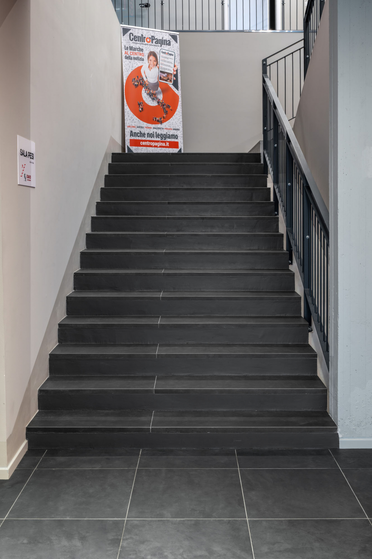 Le terrazze, infine, sono realizzate con Levity 60x120 Grip Touch Plus R11 C, in grado di rispondere alle esigenze prestazionali dello spazio esterno mantenendo un’allineata continuità visiva con gli interni. Gli elementi di collegamento verticale rafforzano questa coerenza attraverso scale rivestite con Chimney 33x120:120 pezzi speciali che coniugano precisione materica ed efficienza costruttiva.