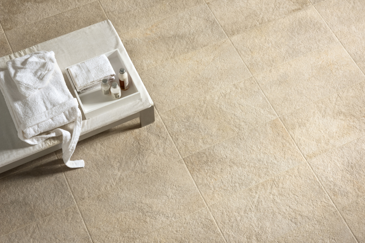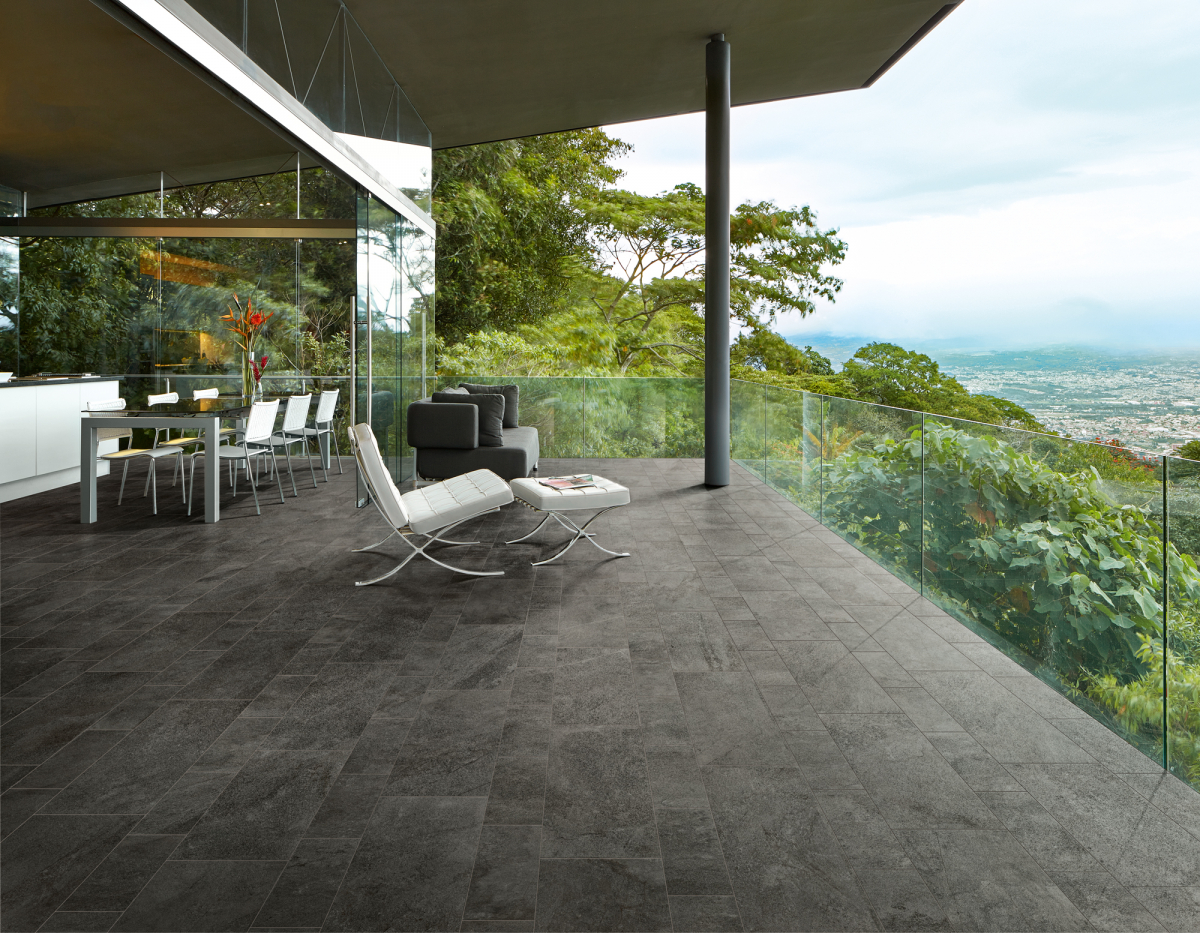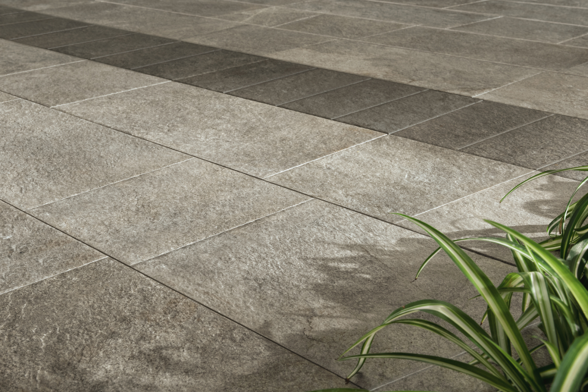Vantando un'ampia gamma di formati, il grès porcellanato effetto pietra consente molteplici schemi di posa. Disponibile anche nella versione Aextra20 ad alto spessore per esterno, Eikon risulta ideale per pavimenti outdoor e si pone come soluzione perfetta per pavimenti indoor con presenza d’acqua, quali piscine o ambienti wellness, grazie alle sua proprietà antiscivolo e alla bassa assorbenza.
