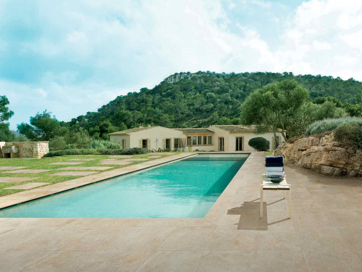 Aextra20 by Caesar Ceramics USA consists of single-piece porcelain stoneware slabs, perfectly squared and rectified with 20mm thickness and in 24''x24'', with anti-slip surface finish. Thanks to the tremendous resistance of Caesar porcelain stoneware and the opportunity to choose from among four different installation systems, Aextra20 is the perfect solution for any outdoor flooring. The broad colour range and the complete set of trims allow to meet any planning need.