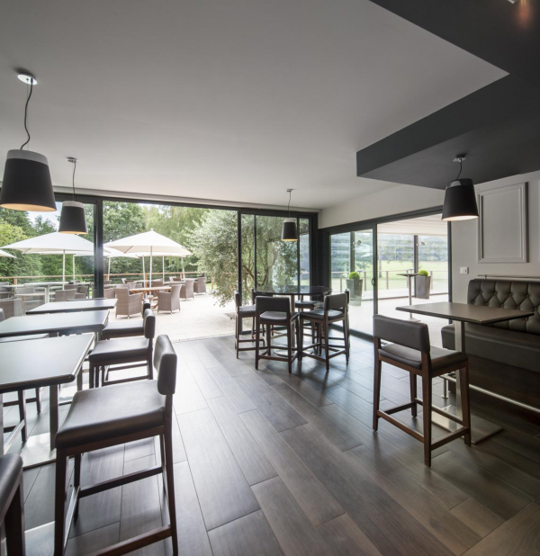 Designed by British architect Frank Pennink, the 18 hole, par 72 course, flows through the scenic, undulating setting that fluctuates between perfectly manicured greens and fairways lines by majestic, age-old trees, in a perfect balance of nature, tradition and creativity. The exclusive and elegant character of the location makes the Golf Club the perfect venue for events or business meetings as it offers large meeting rooms, a marvellous terrace, a refined restaurant and a welcoming reception area. Ceramiche Caesar, known throughout the world as a manufacturing of top quality Made in Italy porcelain tile collections, contributed to the recent renovation of the Gold Club in Nantes with avant-garde ceramic materials covering indoor floors. In-keeping with the natural style that characterises the structure and the location in general, the Life collection in Moro version was chosen. Life is the modern interpretation of natural wood, it evokes its details and veining on a porcelain tile surface, creating an atmosphere of wellbeing in any space. The colour range includes 5 shades that recall different wood essence and available in 4 listel sizes typical of parquet floors. For the Golf Club in Nantes, the two large sizes, 20x120cm and 30x120cm were chosen, ideal for enhancing the spaces without sacrificing aesthetic and technological quality.